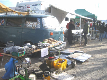![]() La plus grande bourse de pièces anciennes pour voitures, motos et vélos d'Europe, le Veterama, s'est déroulée à Mannheim les 13 et 14 octobre dernier. Créé en 1975, ce marché aux pièces d'occasion n'a cessé de se développer. Actuellement, le Veterama rassemble plus de 3'000 exposants venus de l'Europe entière et attire près de 50'000 collectionneurs ou passionnés de mécaniques anciennes. Si l'on veut visiter tous les stands, il faut parcourir plus de 20 km! Cette année, après un break de... 10 ans, j'ai eu à nouveau l'occasion de me rendre à Mannheim en compagnie de Patrick Montoliu, un fidèle de cette manifestation. Partis le samedi matin à... 01h30, nous sommes arrivés à Mannheim à 06h15 après un trajet de 450 km sans histoire. Le parking n'ouvrant ses portes qu'un peu avant 07h00, nous en avons profité pour prendre quelques forces avant de se "lâcher" dans l'immensité de l'exposition. Coup de chance cette année, nous avons pu